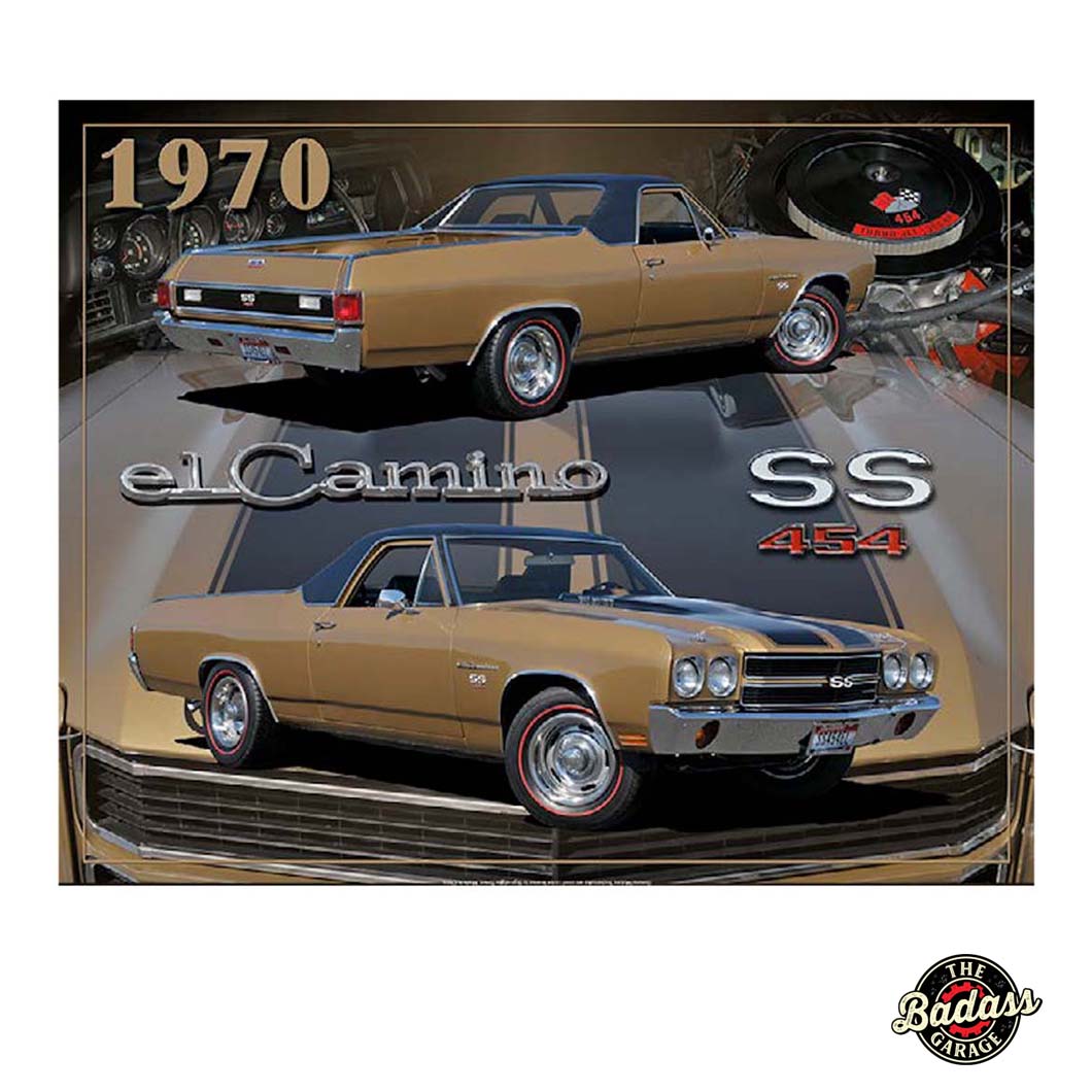 Introducing the “70 Gold El Camino SS Collage” sign β a captivating portrayal of the iconic 1970 Gold El Camino SS in a stunning collage format. With meticulous attention to detail, this piece showcases the car’s distinctive features, from its shimmering gold exterior to its emblematic front grille. The fusion of artistic elements and intricate imagery creates a dynamic visual narrative, offering a nostalgic glimpse into the timeless elegance of the El Camino SS. Whether you’re a vintage car enthusiast or seeking unique decor, this sign brings the charm of the past to any space with its carefully curated design. Product Dimensions 15″W x 12″H x 0.1″D