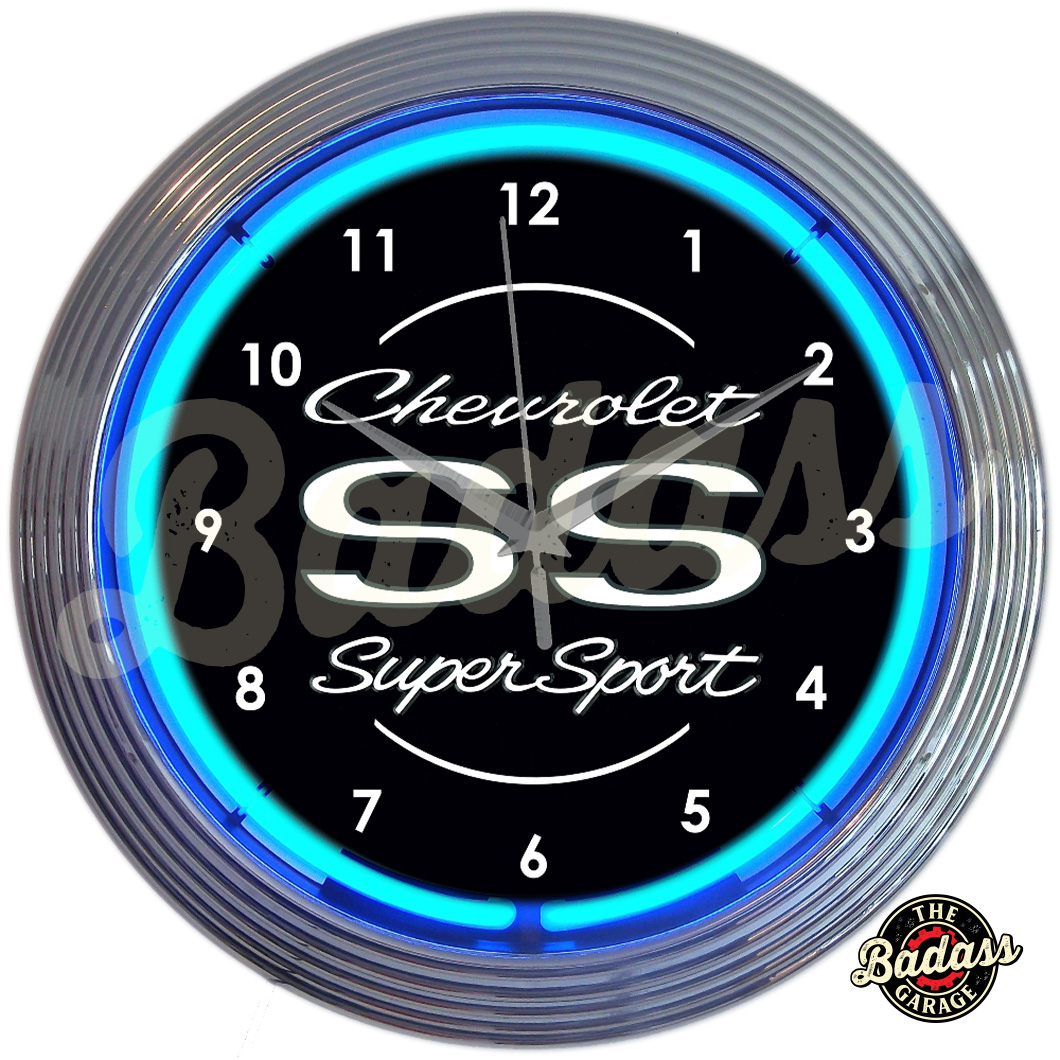 Chevrolet SS Super Sport Blue Neon Clock