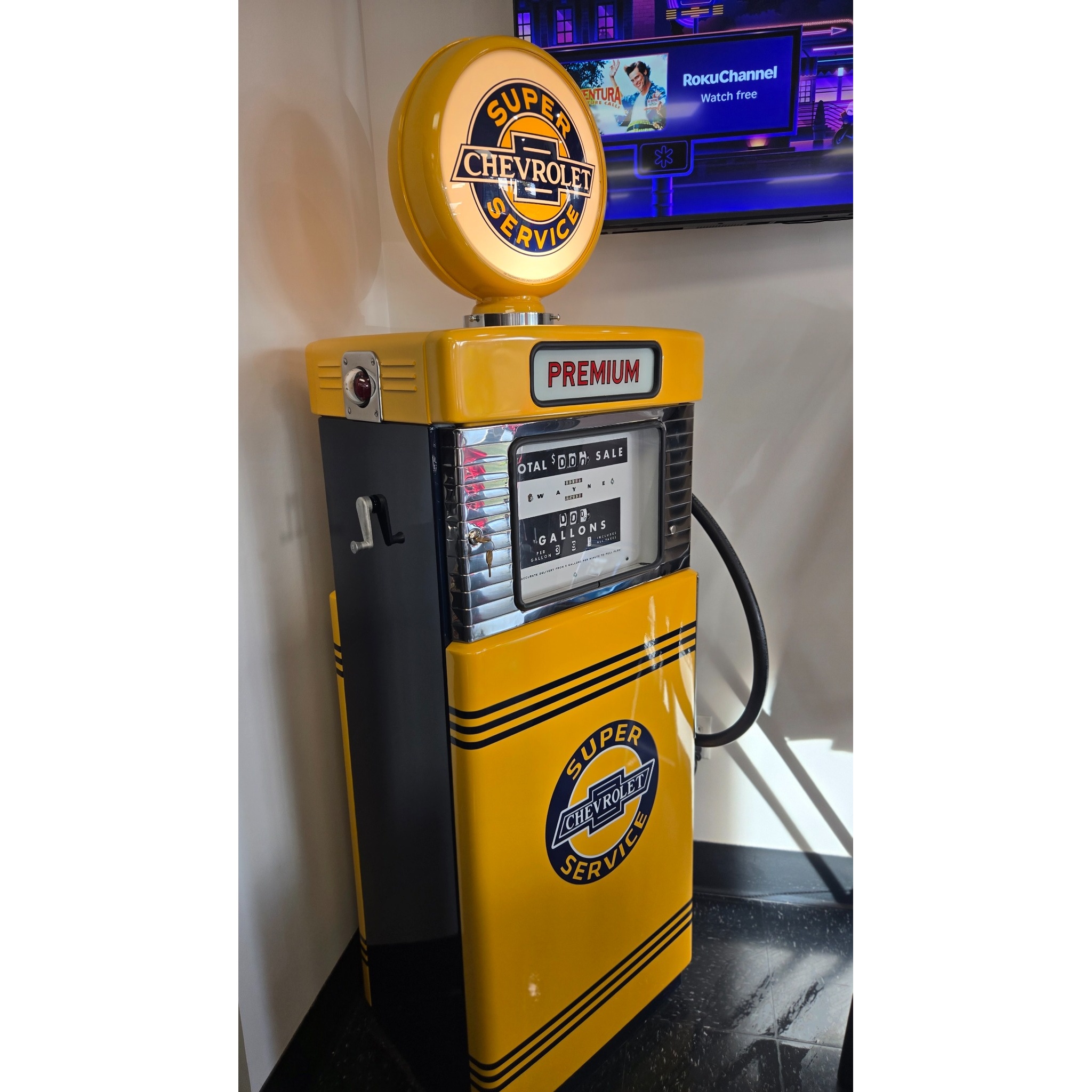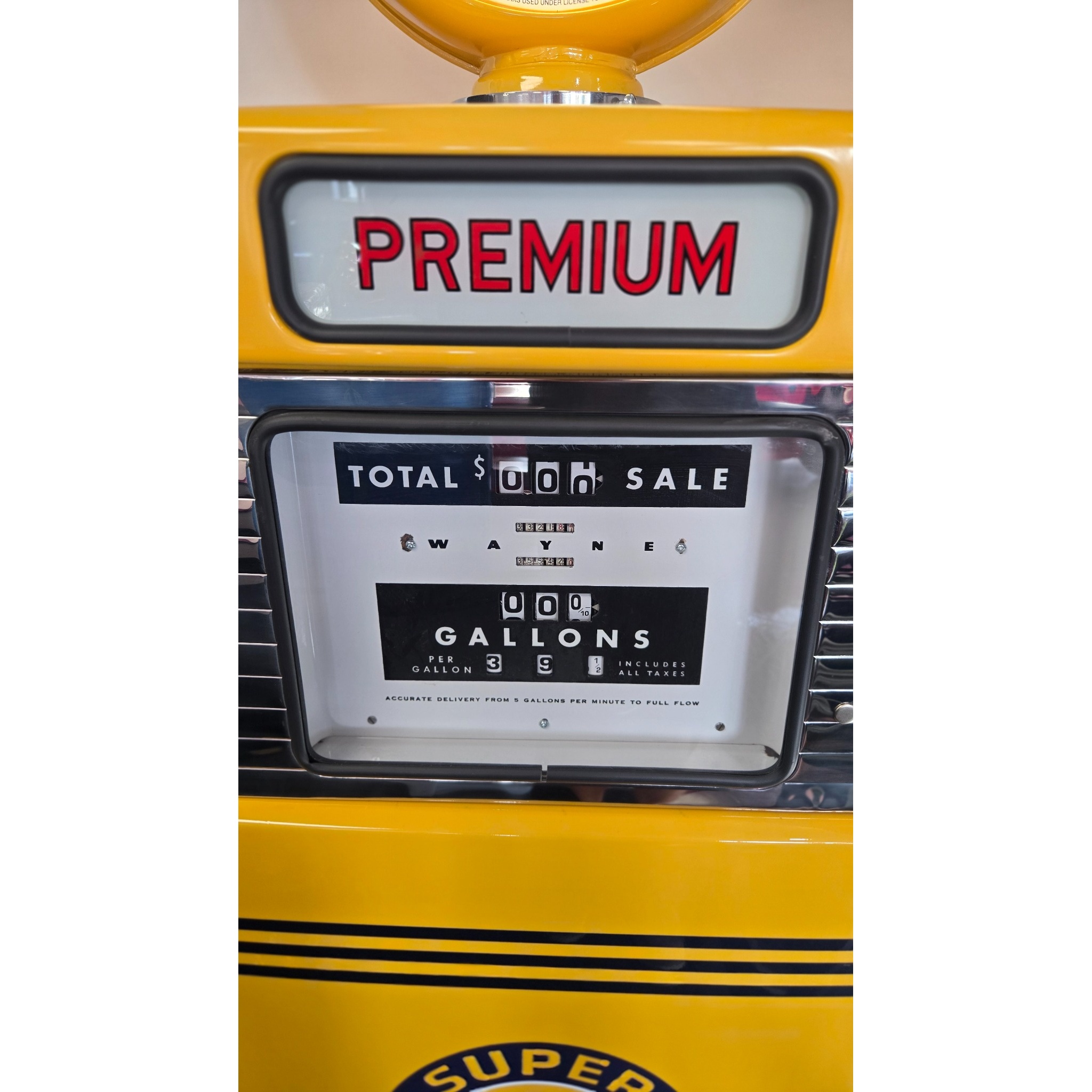 Wayne Model 605 Gas pump from 1957 restoed with Automotive Paint. Globe is lighted