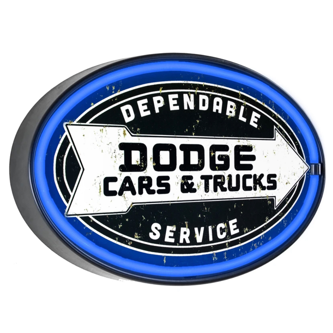 “We know Dodge owners take great pride in their cars, trucks, and other vehicles. Showcase that appreciation by hanging this vintage-inspired neon LED light sign in your garage, home bar or man cave.