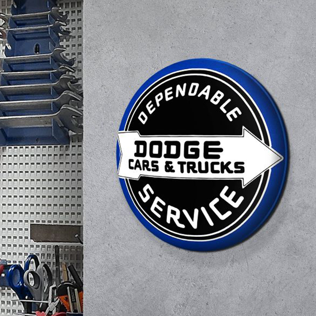 “For all the die-hard Dodge fans out there, complete your collection of all things Dodge with this lightweight metal dome sign that offers bright, bold display and attractive color pairing.