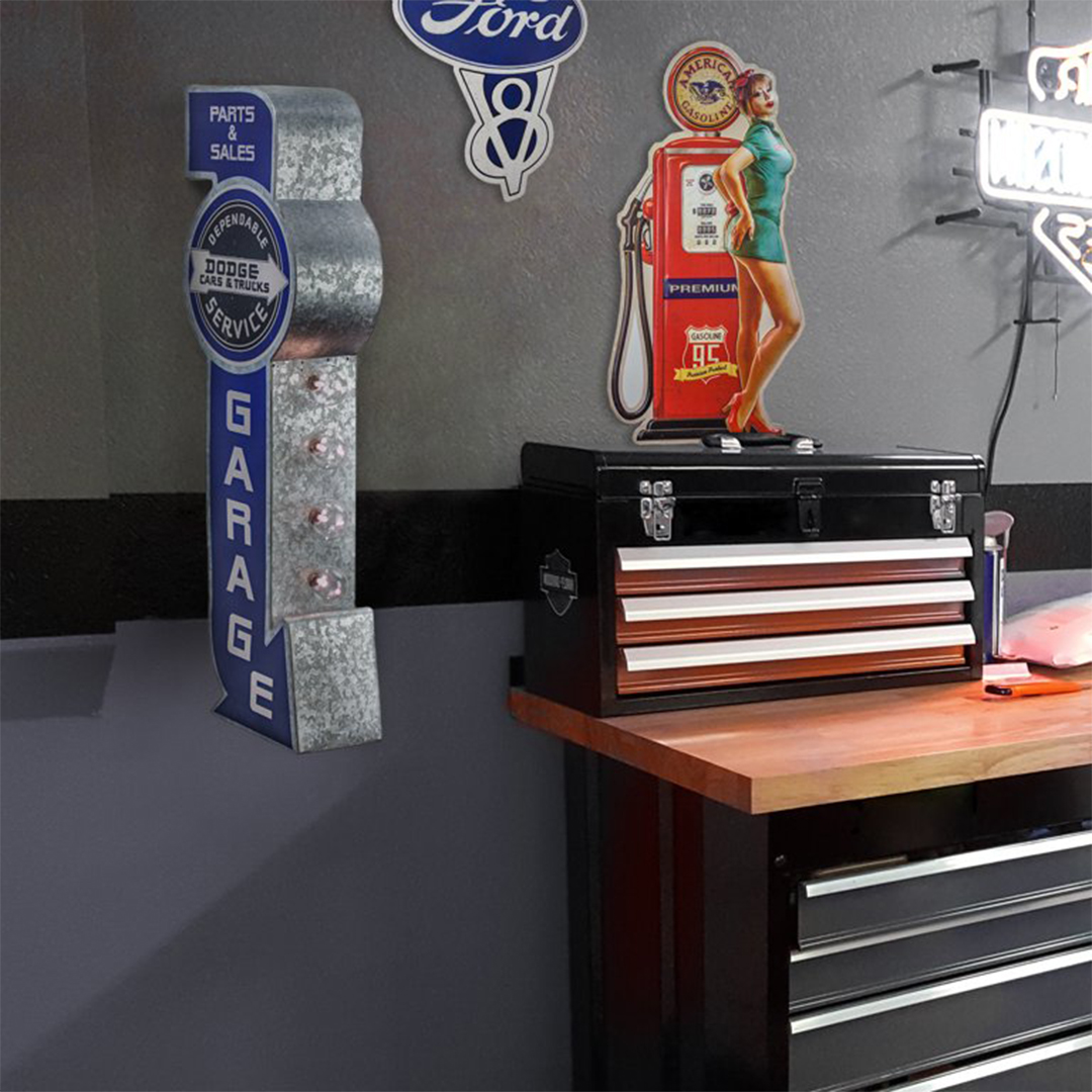 Guaranteed to help complete the look in your garage, auto shop, home bar or man cave, this classic sign of one of America’s most famous car companies will really be a focal point no matter where you place it.