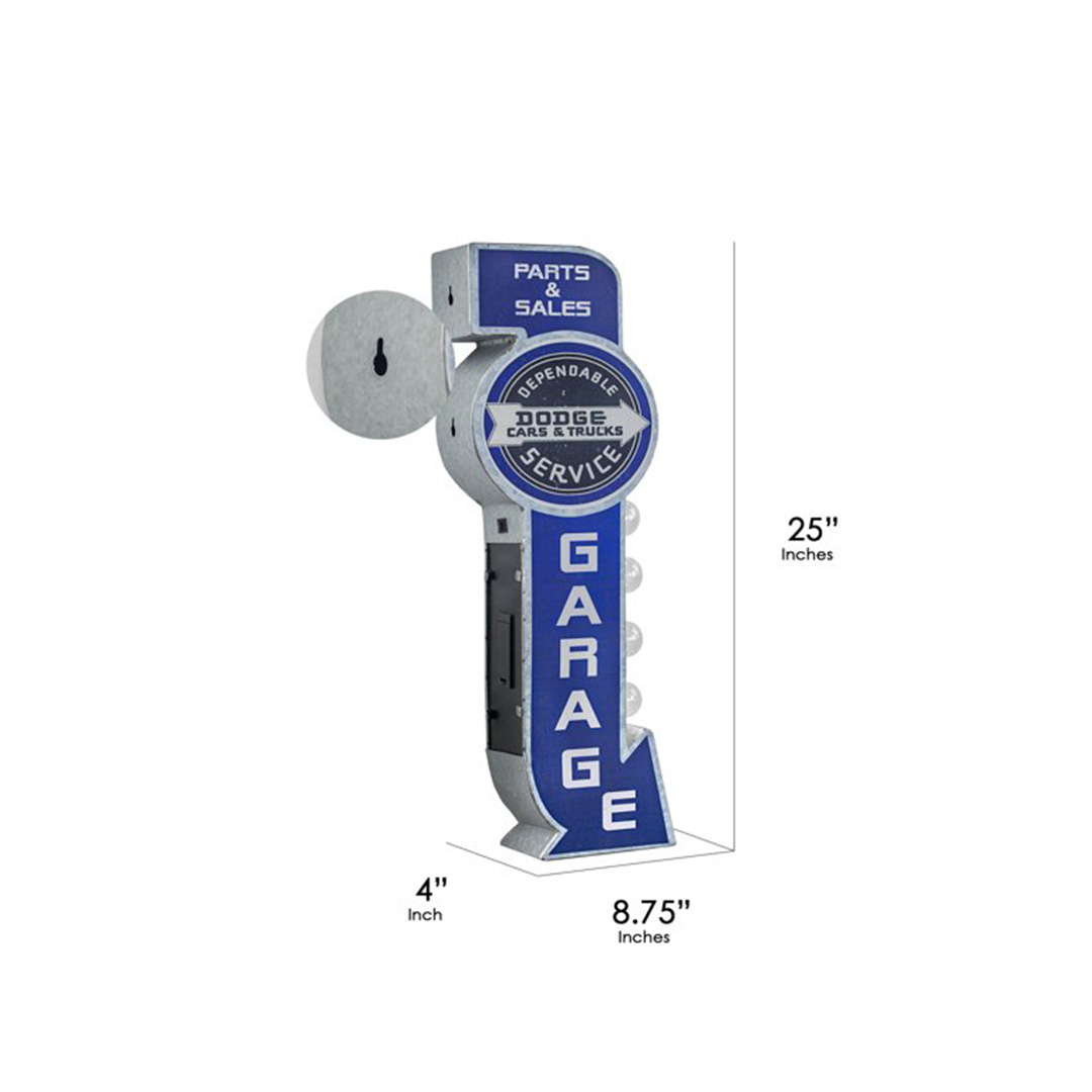 Equipped with four LED light bulbs, this light-up sign makes for a catchy piece of wall decor as well as fun novelty lighting. Featuring the classic Dodge logo and large lettering, this charming piece will make a great addition to the sign collector if your life.