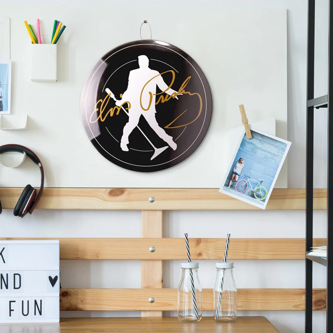 Our retro-style metal sign is the perfect piece to add to your collectibles or give as a fun housewarming gift.Complete your man cave or garage decor by paying homage to the King with our licensed Elvis Presley wall sign.This retro dome Elvis-themed metal sign is reminiscent of decor found in old school family-owned diners, local friendly watering holes, and beachside bars.You’ll love to decorate your garage or home bar with our snazzy Elvis wall art sign constructed of strong, rounded, lightweight metal.This lightweight Guinness-themed metal sign comes equipped with a sturdy threaded key-ring hanger for an easy, even hang. Product Dimensions 16″W x 16″H x 1.75″D