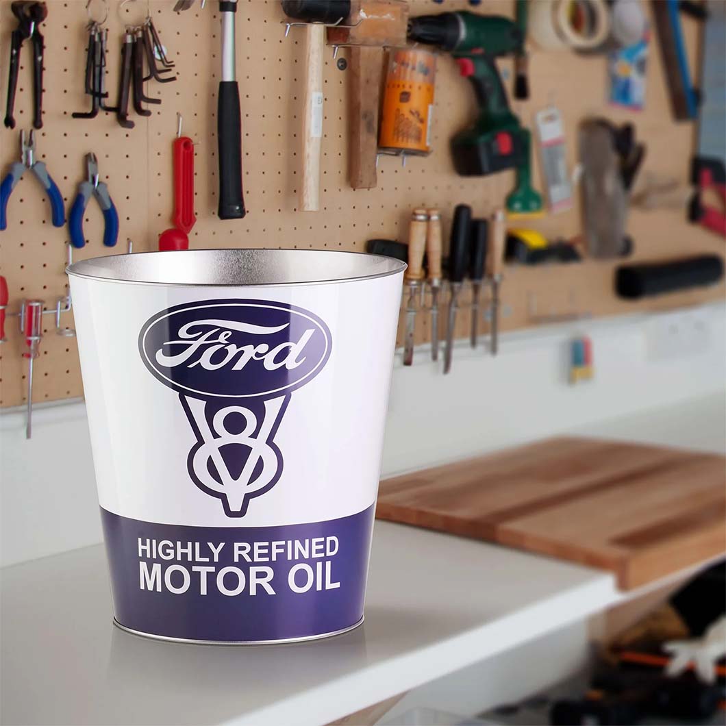 Introducing the Ford V8 Motor Oil Trash Bin – where utility meets automotive flair! This uniquely designed trash bin isn’t your ordinary waste receptacle; it’s a statement piece that brings a touch of the automotive world into your space. Featuring a removable, washable liner, ample capacity, and convenient hands-free operation, the Ford Motor Oil Trash Bin transforms waste disposal into a stylish experience, perfect for any car enthusiast’s domain! Product Dimensions 10.5″W x 11″H x 10.5″D