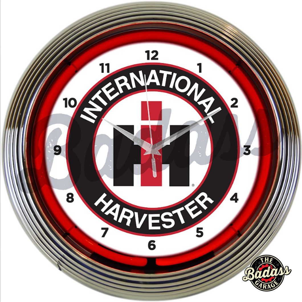 International Harvester Neon Clocks feature a hand blown ring of real glass neon, generating 25 watts of light. The neon clocks have glass faces and feature multi-tiered art deco styles rims. The International Harvester neon clock features a chrome rim with a single ring of red neon. The quartz movement clock operates on one AA battery (not included). The neon light is powered by an AC adapter (included) that plugs directly into a wall outlet. Give your home the fabulous glow of real neon! FOR INDOOR USE ONLY Product Dimensions 15″W x 15″H x 3″D