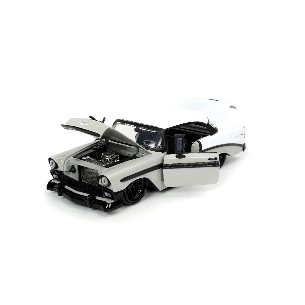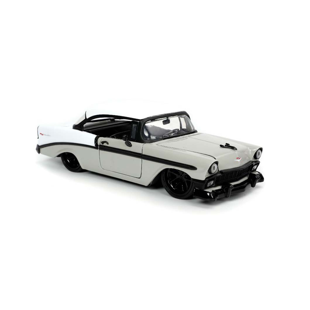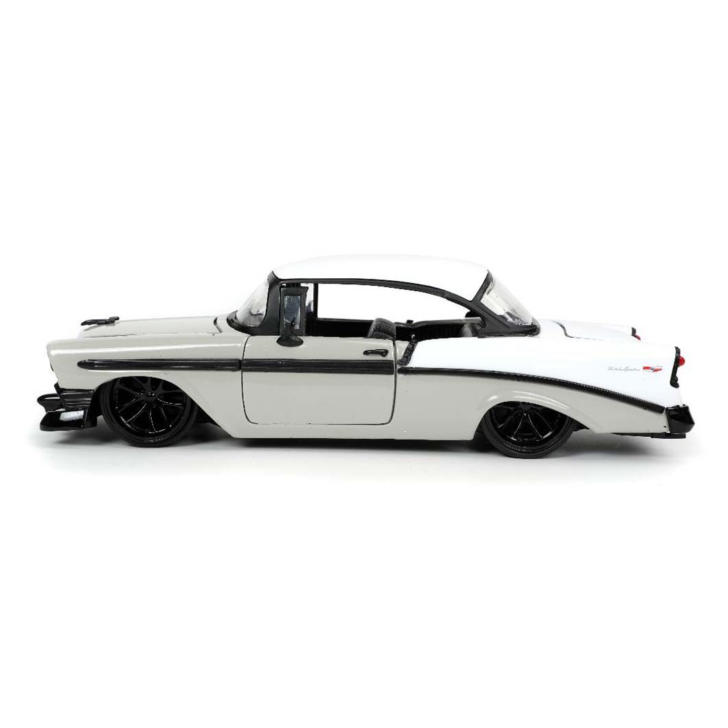 Introducing the Jada 1/24 “BIGTIME Muscle” 1956 Chevy Bel Air in a sleek Grey/White color combination. This impressive 1/24 scale die-cast model captures the timeless beauty and elegance of the iconic 1956 Chevy Bel Air. With meticulous attention to detail and expert craftsmanship, this collectible car is perfect for enthusiasts and collectors alike. Whether displayed in your collection, garage, or man cave, this classic Chevy Bel Air replica is sure to make a statement and evoke nostalgia for the golden era of American automobiles.