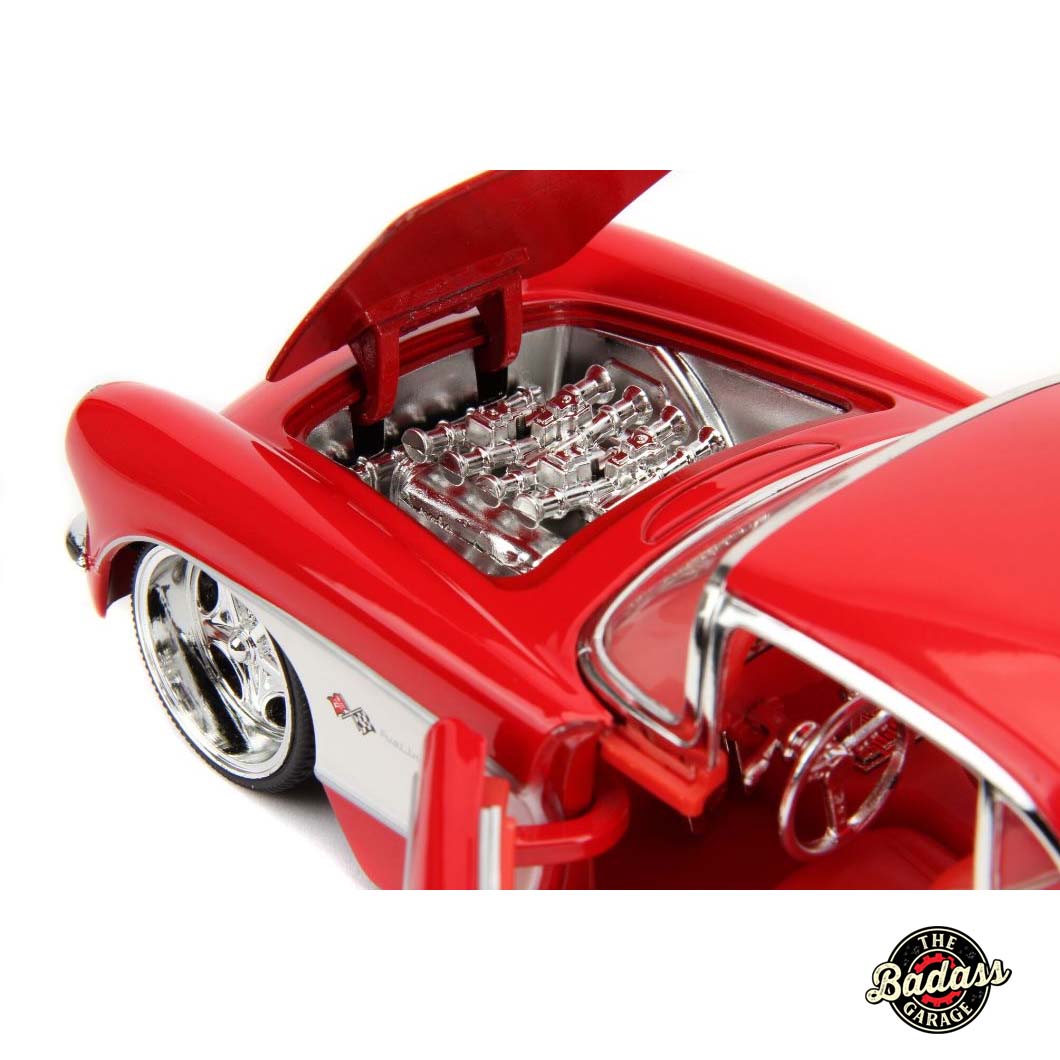 Jada 1/24 Scale “BIGTIME Muscle” 1957 Chevy Corvette – Glossy Red Diecast Metal Collectible Model Car