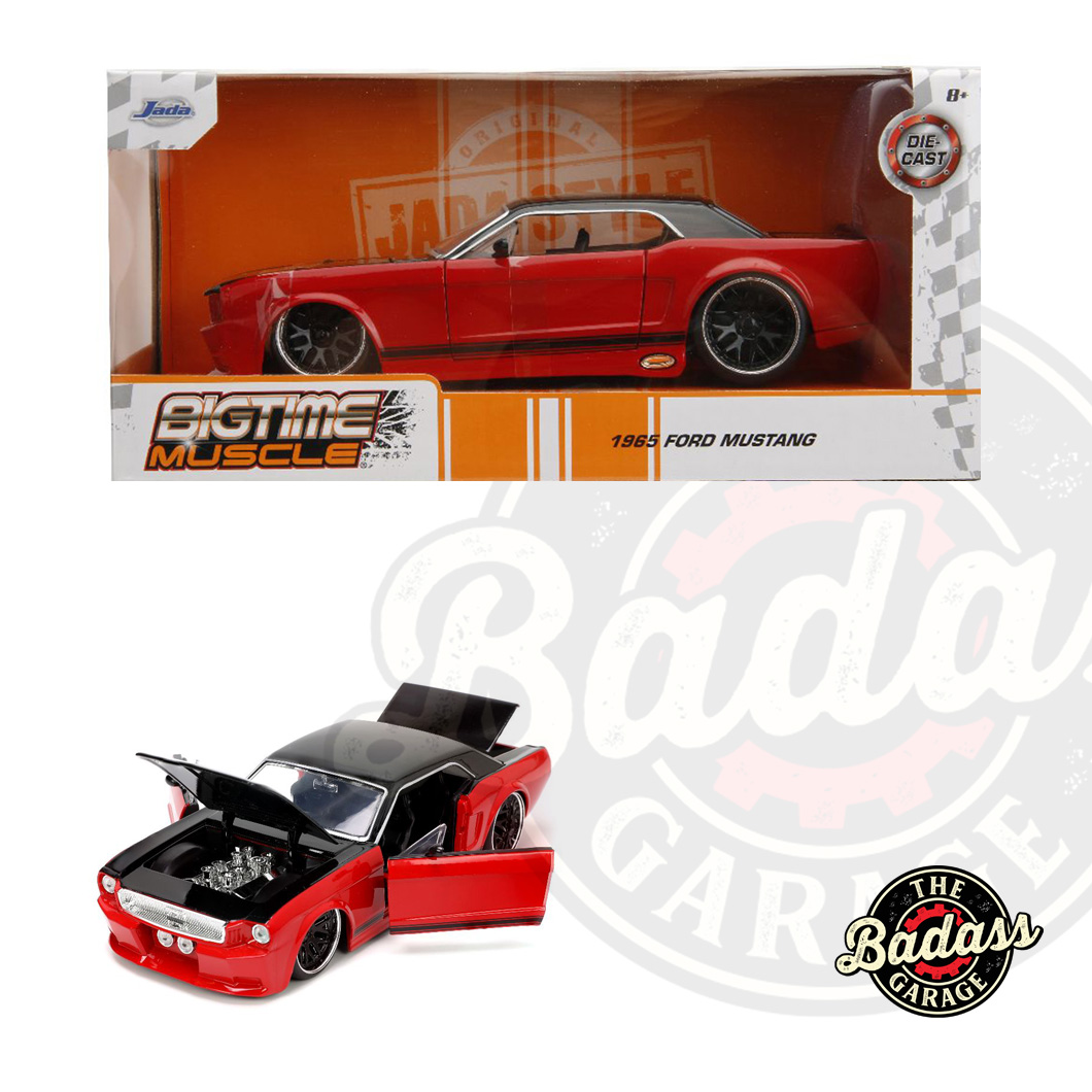 The Jada 1/24 BIGTime Muscle 1965 Fd Mustang GT is a sensational customer favorite, and we hope you like it just as much. It’s rich in features like opening doors, hood, and trunk. Also includes a detailed interior, engine compartment, and chassis with a quality Diecast, metal body and highly detailed wheels with chrome accents. Dimensions are approximately L-6.5, W-3, H-2 inches.