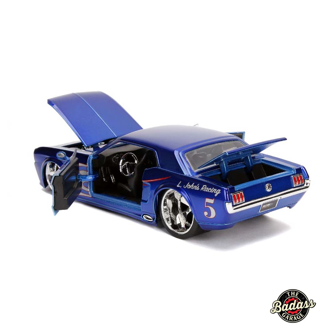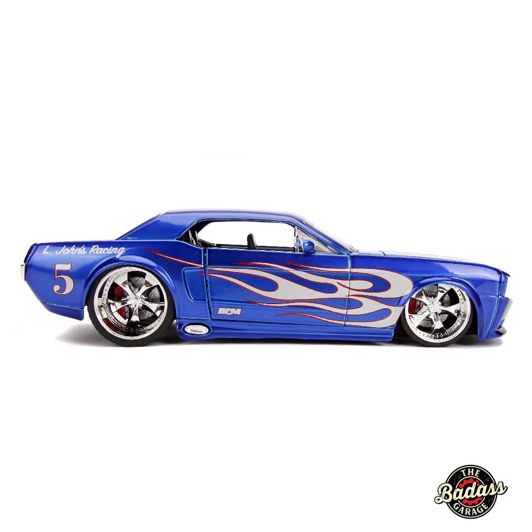Jada 1/24 Scale “BIGTIME Muscle” 1965 Ford Mustang GT – Metallic Blue Firestone Flames Diecast Metal Collectible Model Car