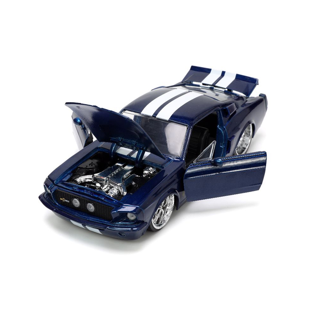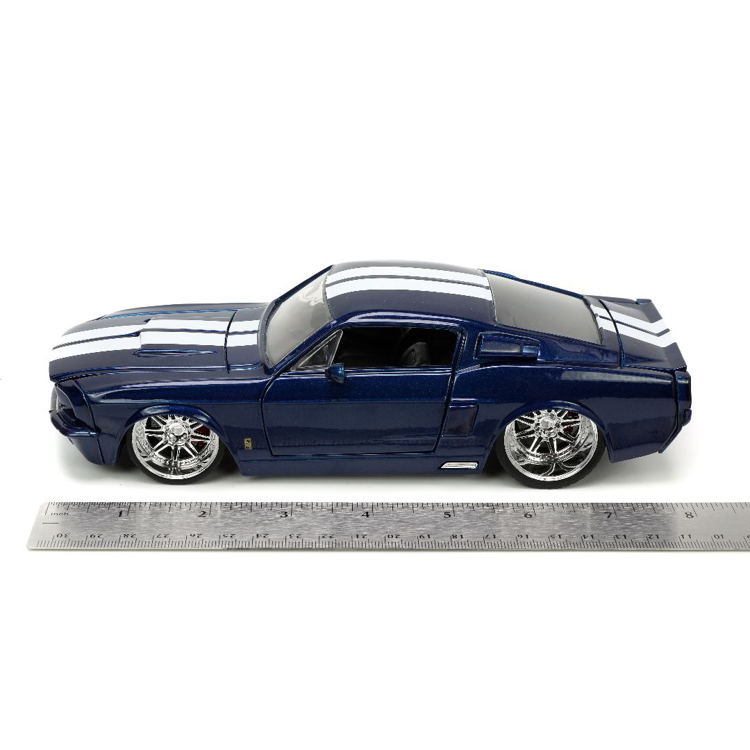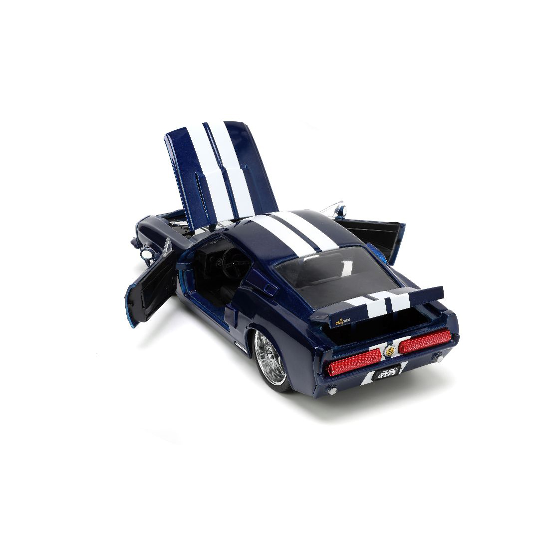 The Jada 1/24 “BIGTIME Muscle” 1967 Shelby GT500 is the product you didn’t think you need, but once you have it, something you won’t want to live without. It’s rich in features like opening doors, hood, and trunk. Also includes a detailed interior, engine compartment, and chassis with a quality Diecast, metal body and highly detailed wheels with chrome accents. Dimensions are approximately L-8.5, W-4, H-3.5 inches.