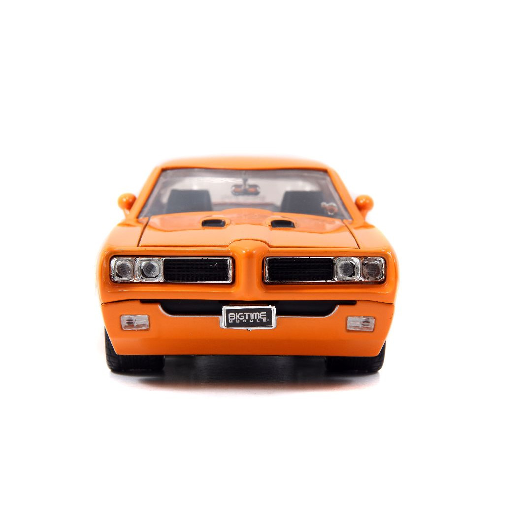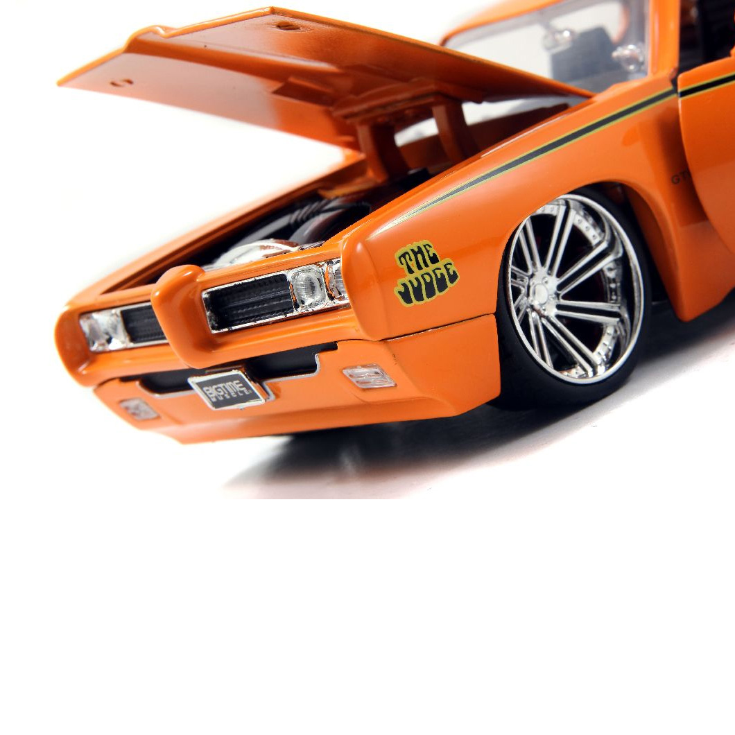 Rev up your collection with the Jada 1/24 Scale ‘BIGTIME Muscle’ 1969 Pontiac GTO The Judge Racing. Drenched in a vibrant glossy orange finish, this diecast metal model car captures the fierce, high-performance spirit of the iconic GTO. Perfect for enthusiasts and collectors, it combines classic muscle car aesthetics with standout detailing in a collectible format.