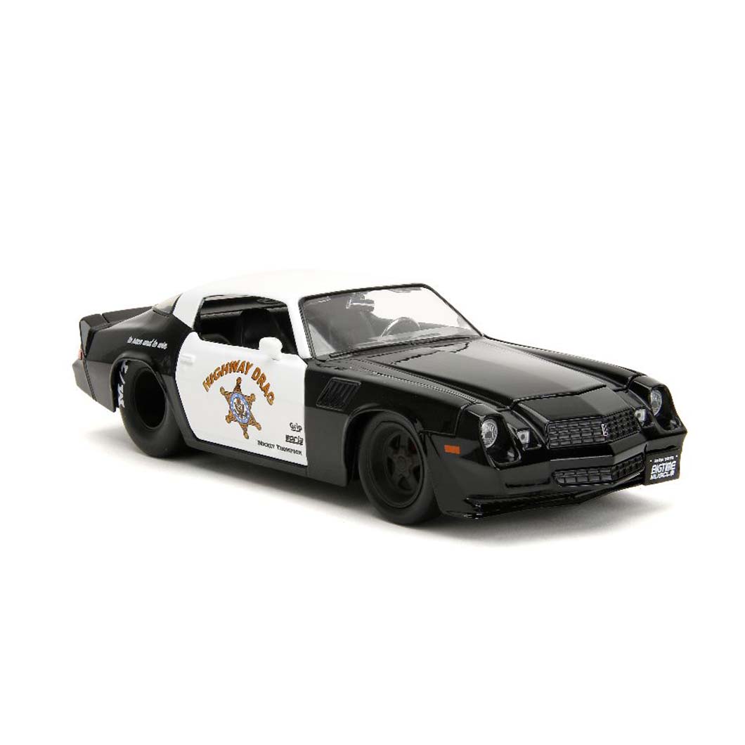 Introducing the Jada 1/24 “BIGTIME Muscle” 1979 Chevy Camaro Z28 Police edition. This Diecast, model captures the essence of a classic police cruiser with its detailed design and authentic features. The iconic Camaro Z28 is a symbol of power and performance, and this collectible version pays tribute to its legacy. Perfect for car enthusiasts and collectors alike, this 1/24 scale model is a remarkable addition to any collection, showcasing the timeless allure of American muscle cars.