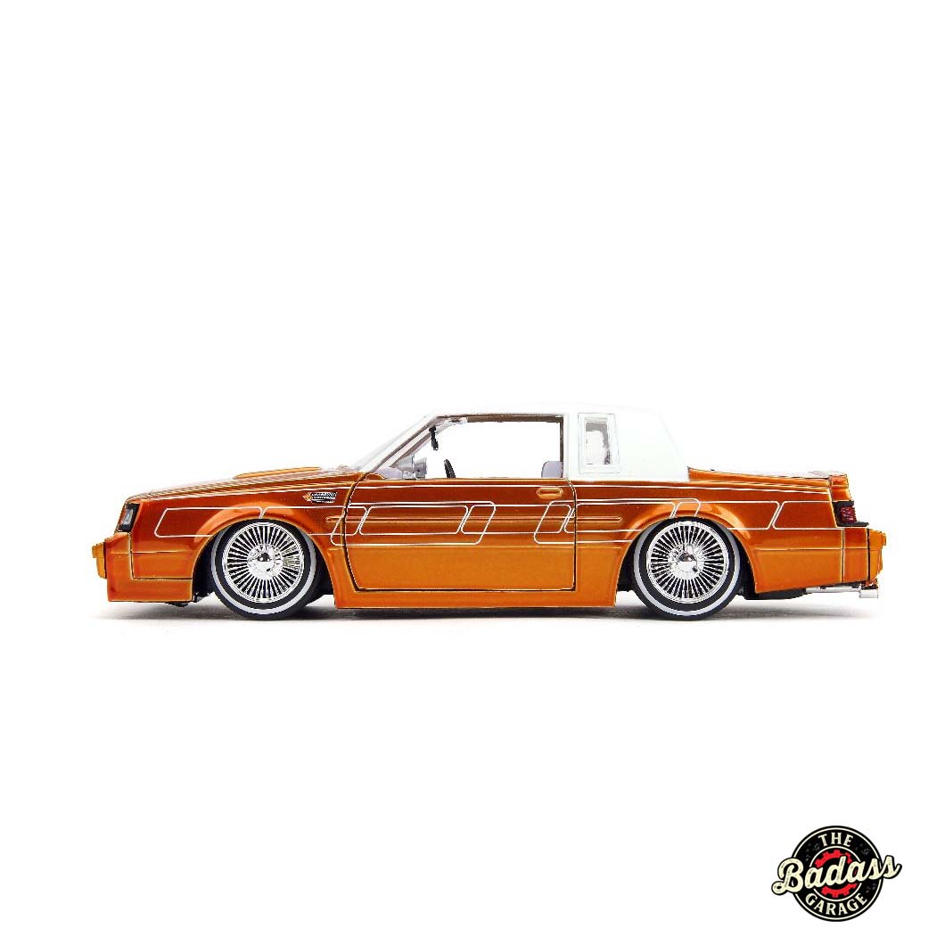 01 Authentic 1/24 Scale Replica โ A custom lowrider version of the 1987 Buick Grand National with a bold metallic orange finish.