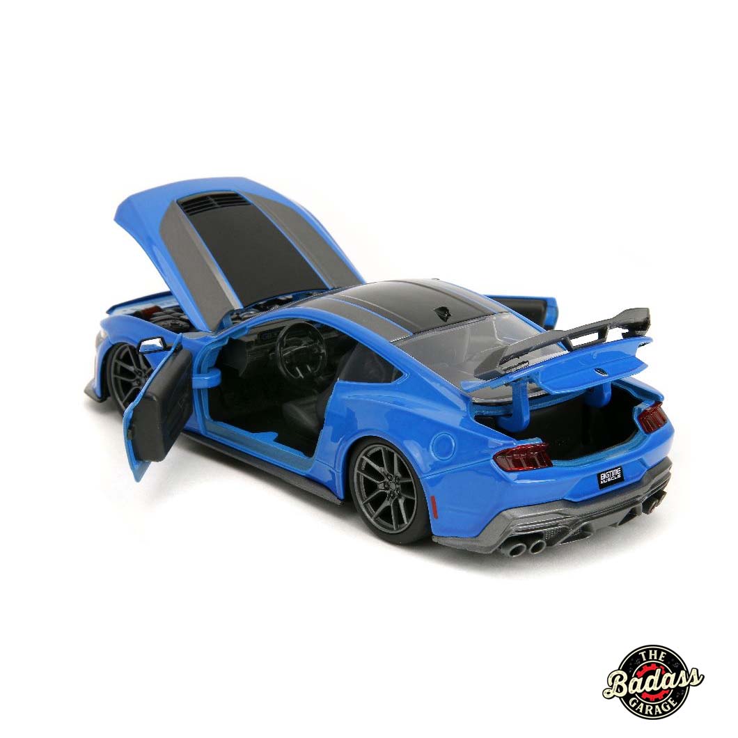 Experience the power and precision of Ford’s latest performance beast with the Jada 1/24 Scale “BIGTIME Muscle” 2024 Mustang Dark Horse in a stunning blue finish. This highly detailed die-cast model showcases the aggressive lines and modern design of the 2024 Mustang, featuring a sleek, bold paint job and intricate accents that capture the essence of American muscle. A must-have for Mustang enthusiasts and collectors, this model blends innovation with the classic power of the Mustang legacy!