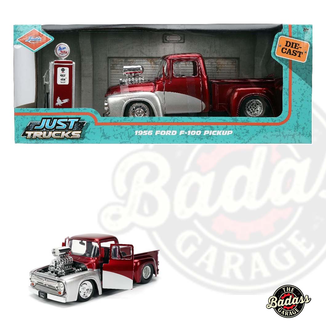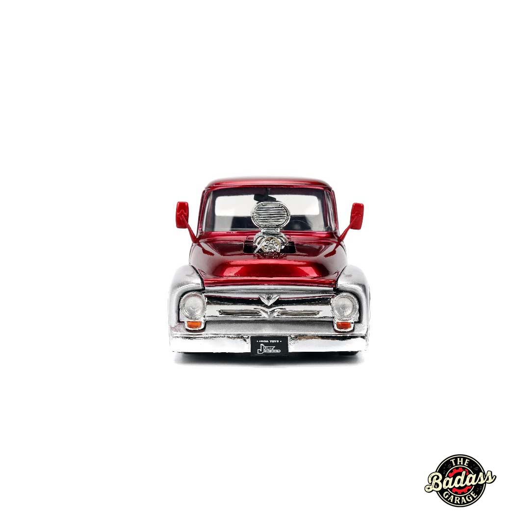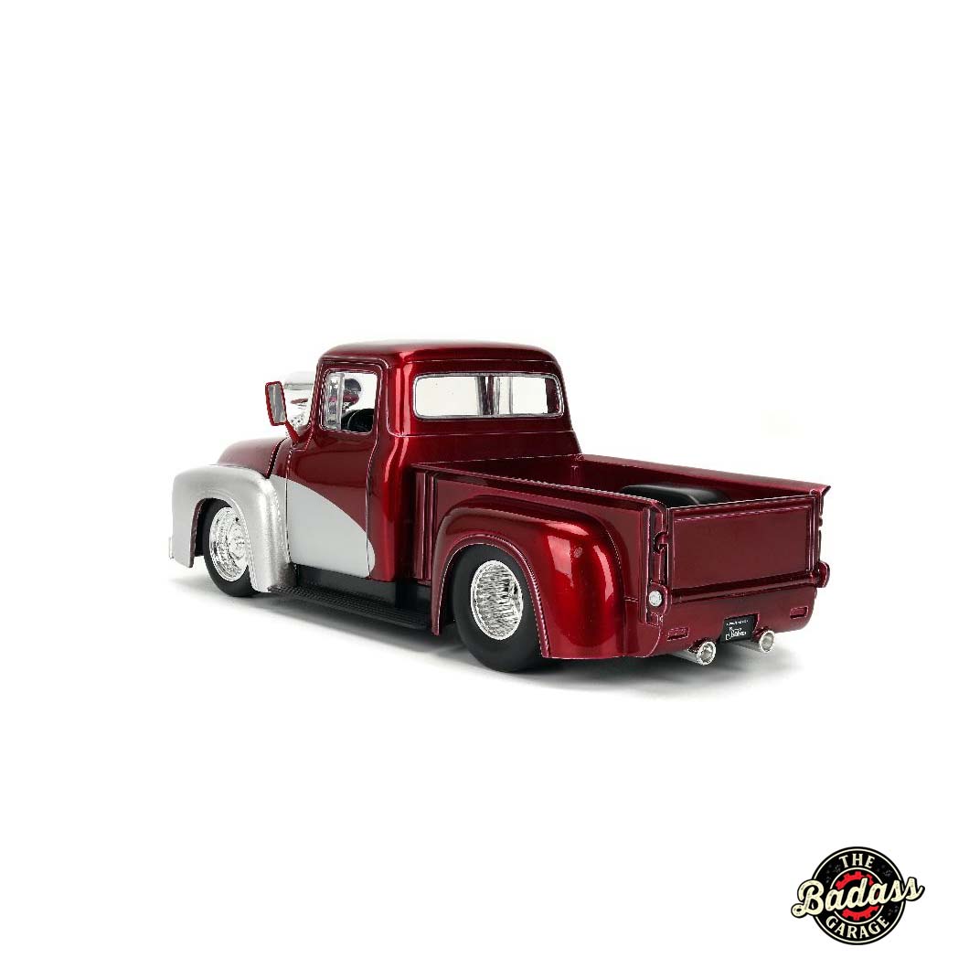 1:24 scale diecast 1956 Ford F-100 with blown engine and high-gloss paint
