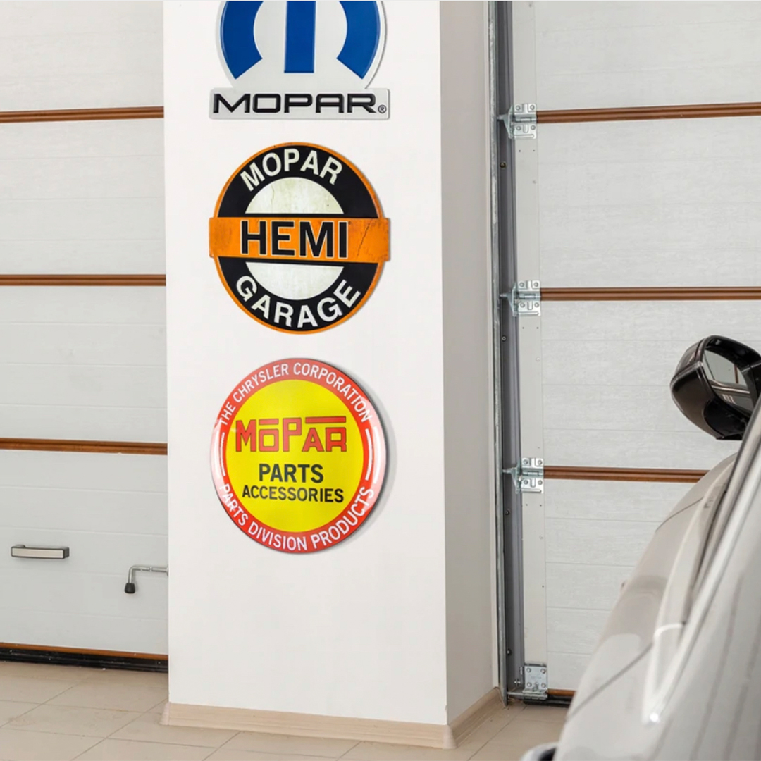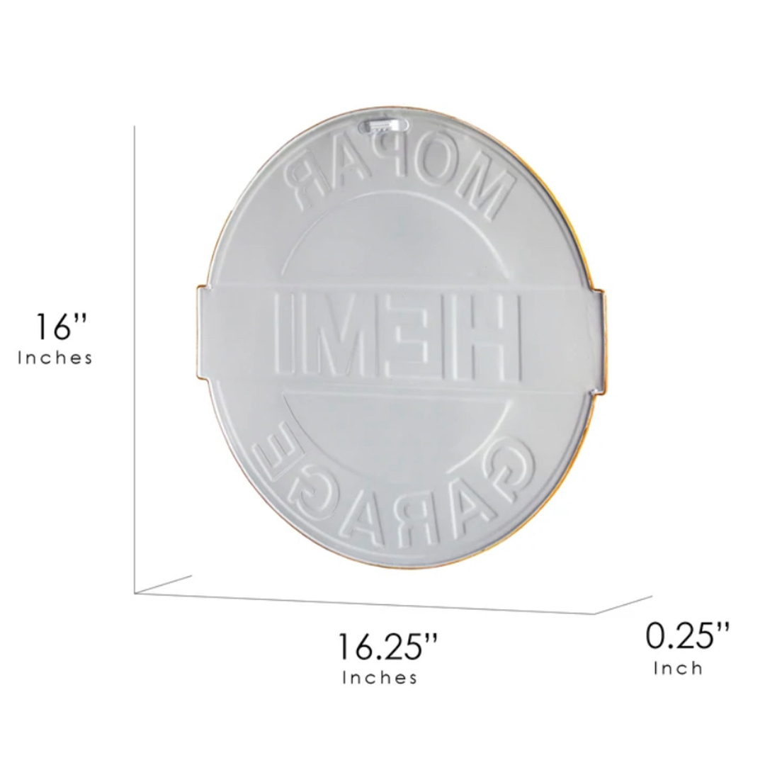 Outfitted with a saw-tooth hanger for easy hanging, this wall decor sign is ready to race into your home and onto your walls. Be it a man cave, garage, home bar, or for your collage of vintage signs, this classic Chrysler Hemi sign is certain to fit in seamlessly. Product Dimensions 16.5″W x 15.5″H x 0.13″D