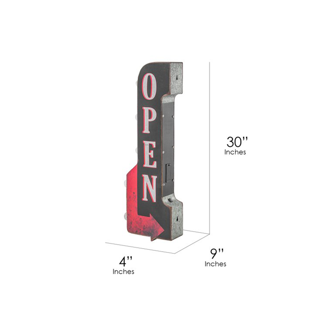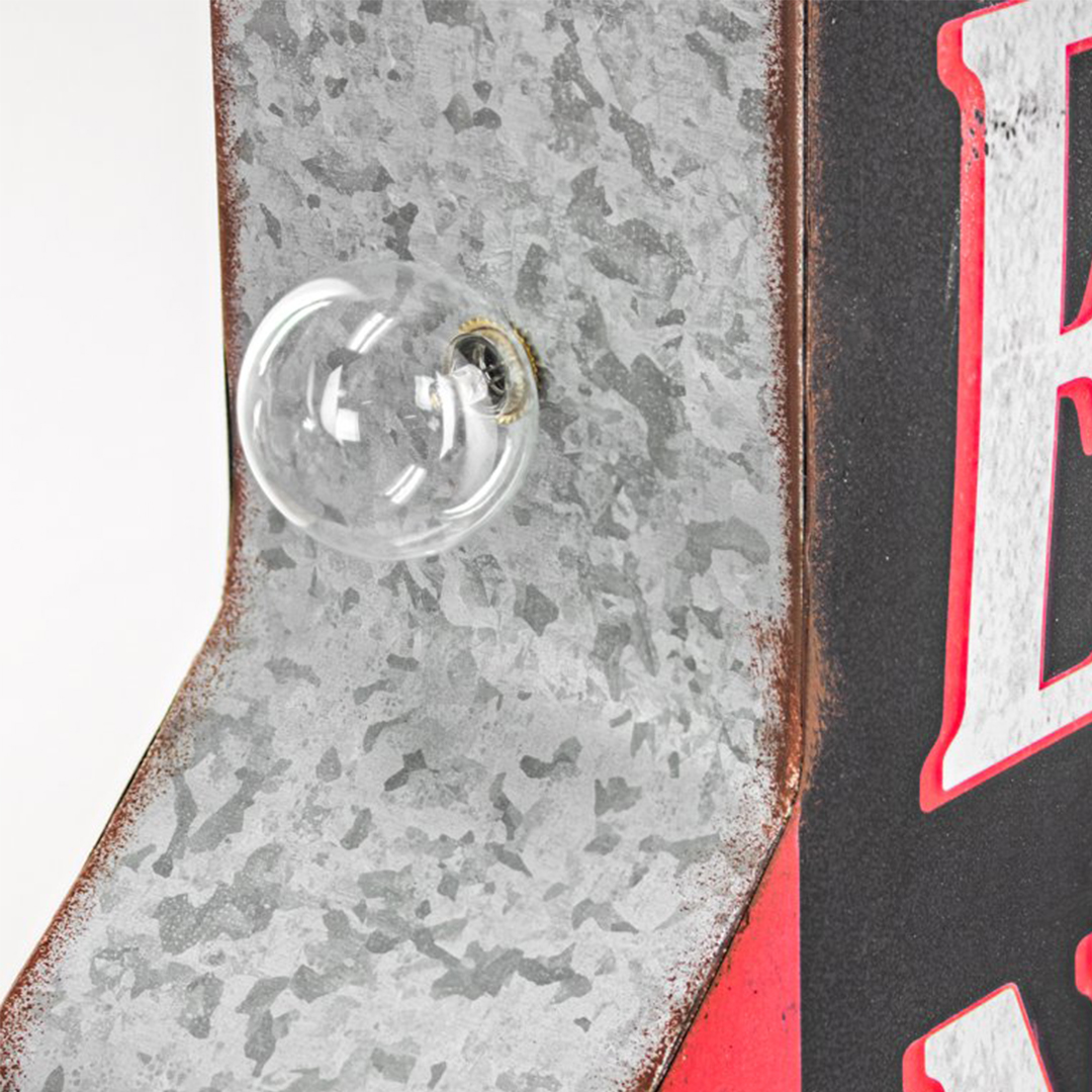 Lined with five LED lights, this piece offers a dazzling way to let everyone know your home bar, store, or actual restaurant/bar is open for business. With the warm yellow lights complementing the black background of the sign, you can rest assured knowing this light-up LED sign will become a catchy conversation starter at your next shindig. Plus, with an extra LED bulb included, you have a replacement bulb ready to go. Outfitted with two keyhole slots on the back for hanging, which allows this sign to be seen from both sides, this light-up LED sign is lightweight and easy to install. Plus, an extra LED bulb is included so you have a replacement bulb ready to go. A simple on/off toggle switch on the back allows for easy operation. A perfect gift idea for Father’s day, dad’s birthday, or for anyone that is a lover of vintage signs, this LED sign will surely stand out and shine bright!” Product Dimensions 11″W x 30″H x 4″D