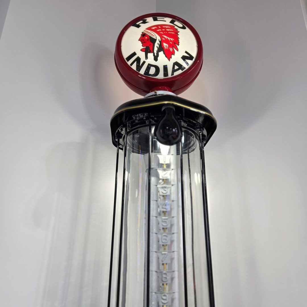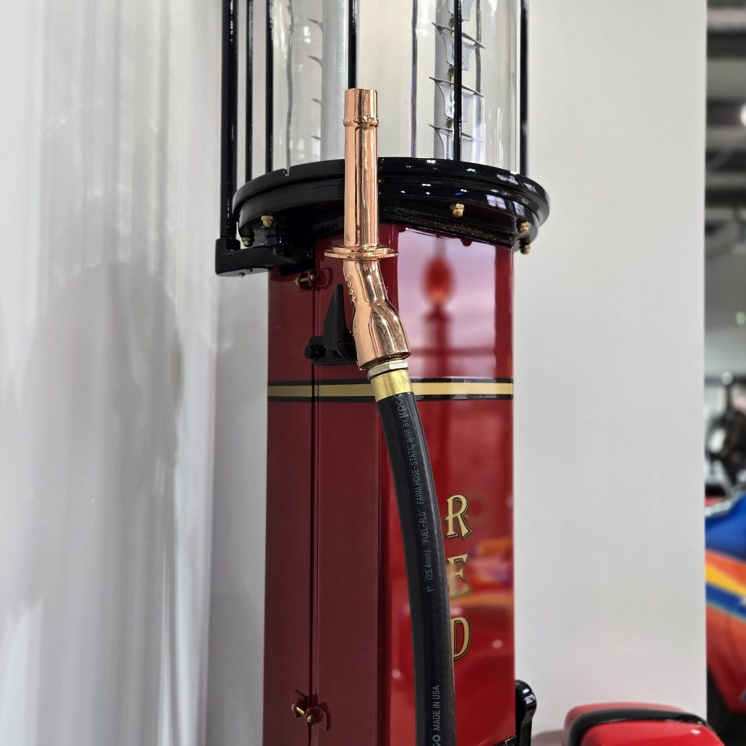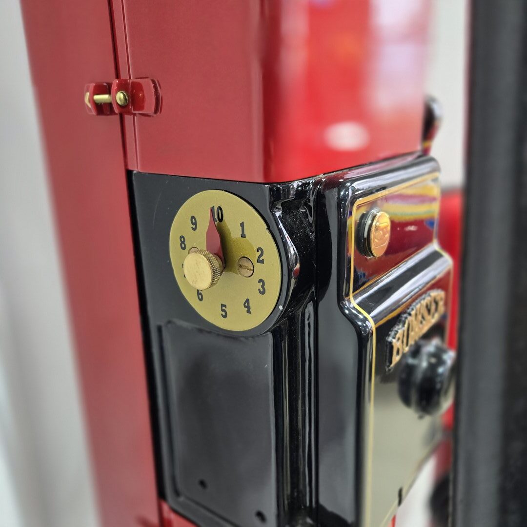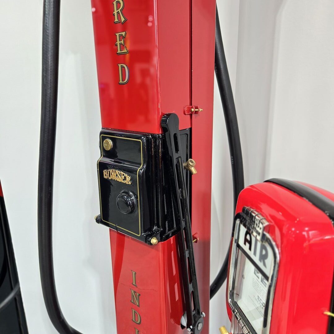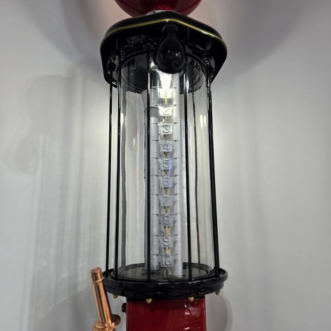 1922 Bowser Visable pump restored with automotive paint – Globe lights up along with lamps for the glass section.