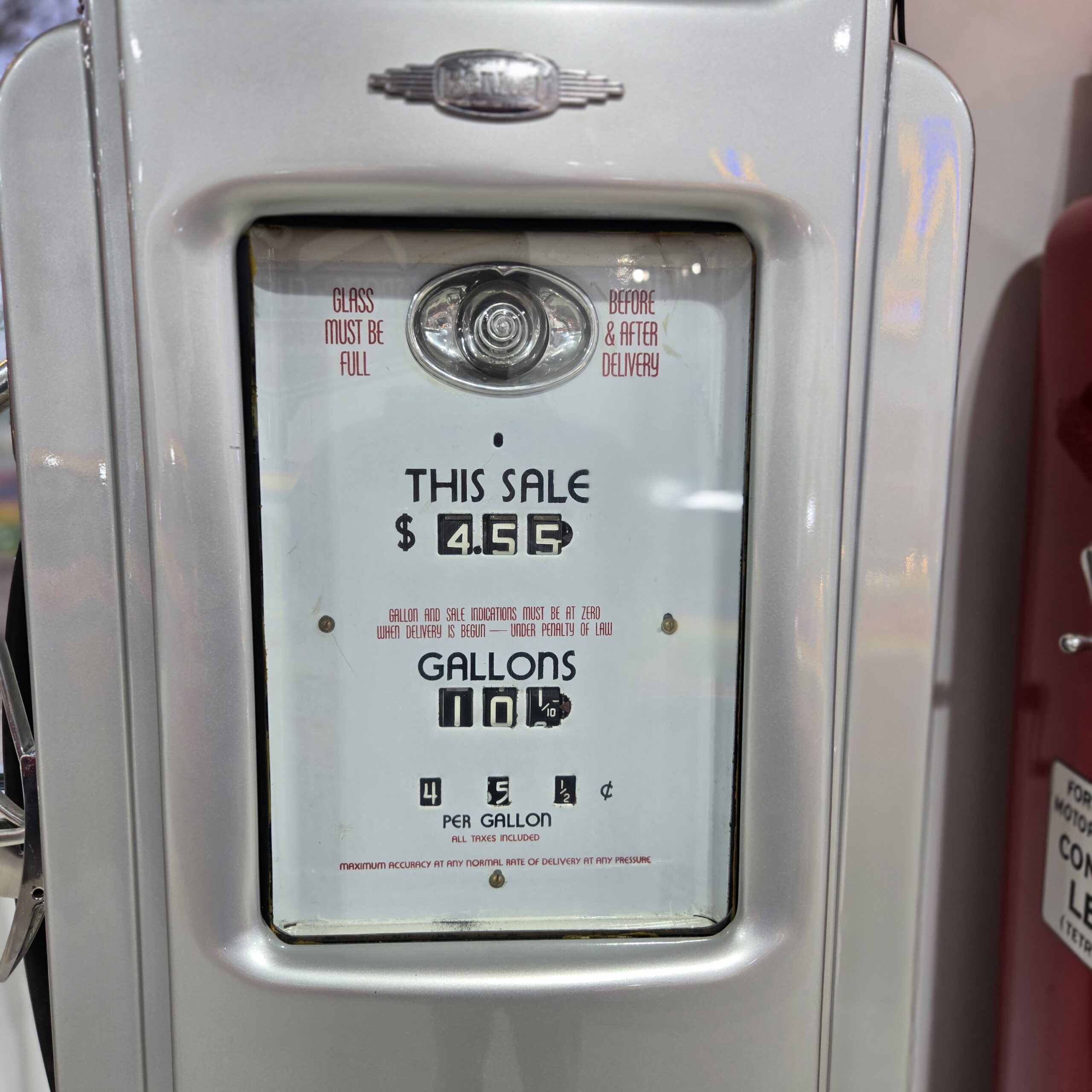 Bennett 541 Four Window Gas pump restored with automotive paint. Lights up on all 4 sides
